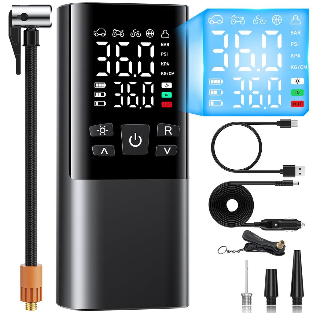 🚗 [Multifunctional Tire Pump & 1-Year Warranty] 🔦 The tire pump features a built-in, high-brightness LED emergency light with three lighting modes (normal, flashing, and SOS signal). It provides sufficient light even in dark places, allowing for safe nighttime work or inflating tires inside a car. 📲 The electric tire pump also features overheating and overcharge protection for safe use. It also features a mobile power function, making it extremely useful in emergencies. 💌 Comes with a 1-year warranty. Please feel free to contact us if you experience any issues with the pump or if you experience any problems during use.