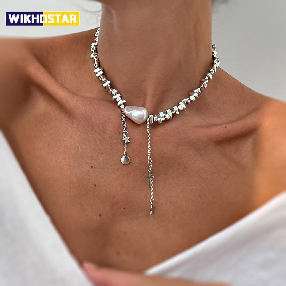 Elegant Irregular Imitation Pearl Beads Necklace for Women Vintage Party Wedding Tassels Choker Fashion Jewelry Accessories Gift