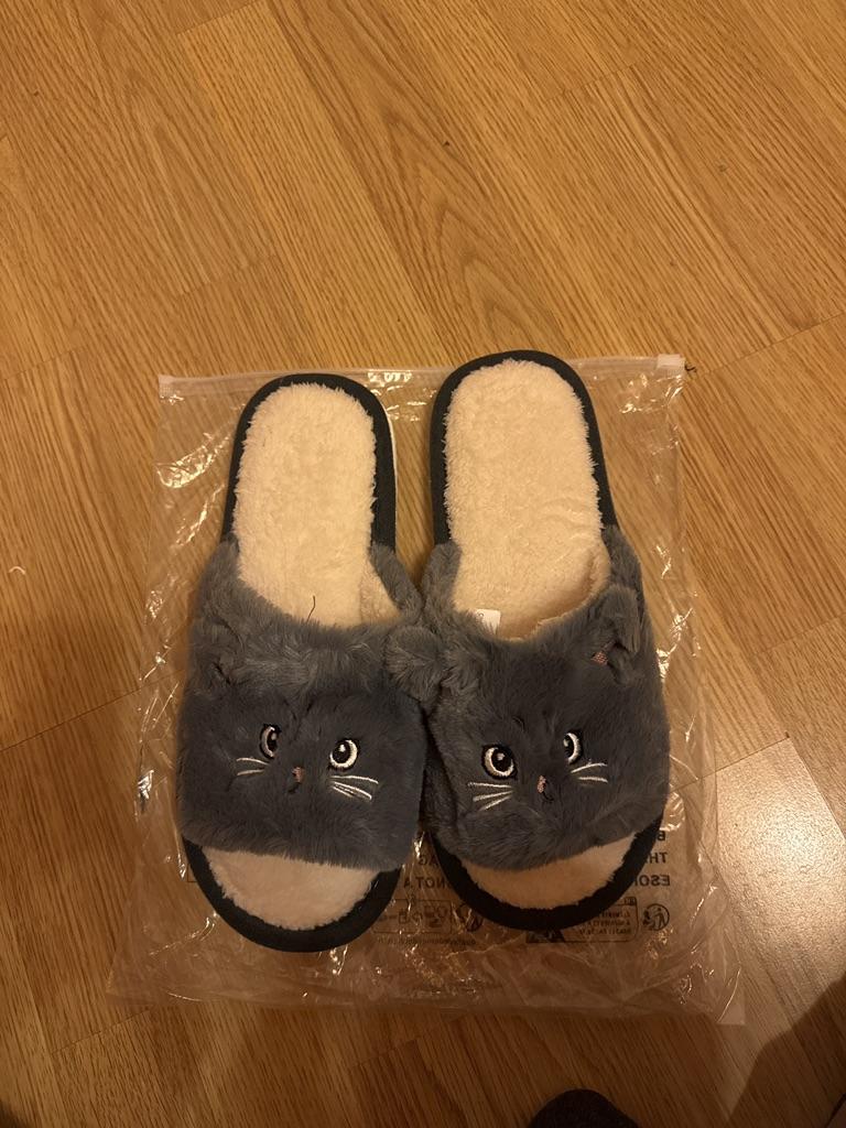Cat Cartoon Home Thickened Warm Slippers, Plush Soft-soled Toe Exposed Cat Cotton Slippers