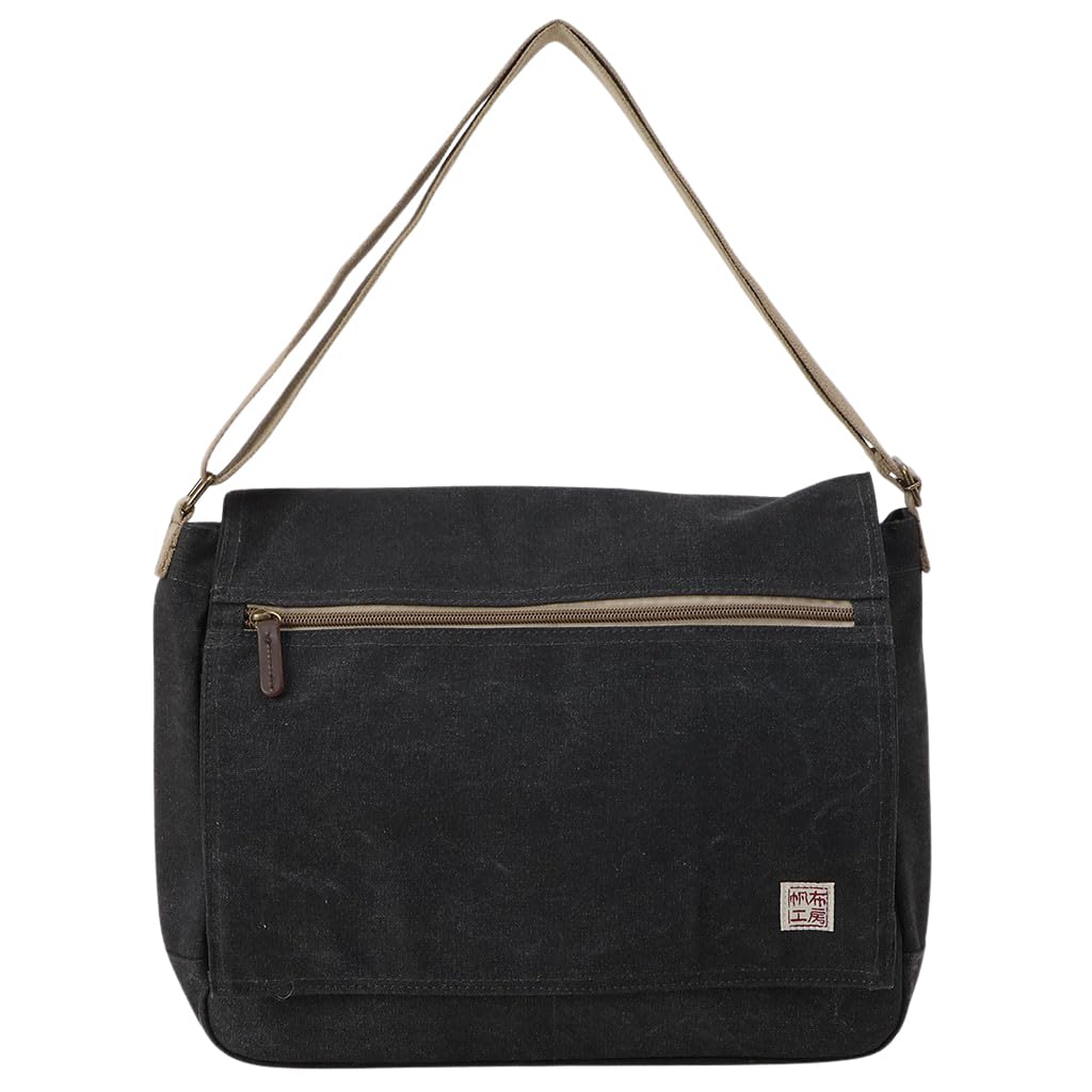 Hanpu Kobo Canvas Shoulder Bag and Canvas Crossbody Fits A4 and B4 3x81 Black [Men's Women's Bag, Sizes]