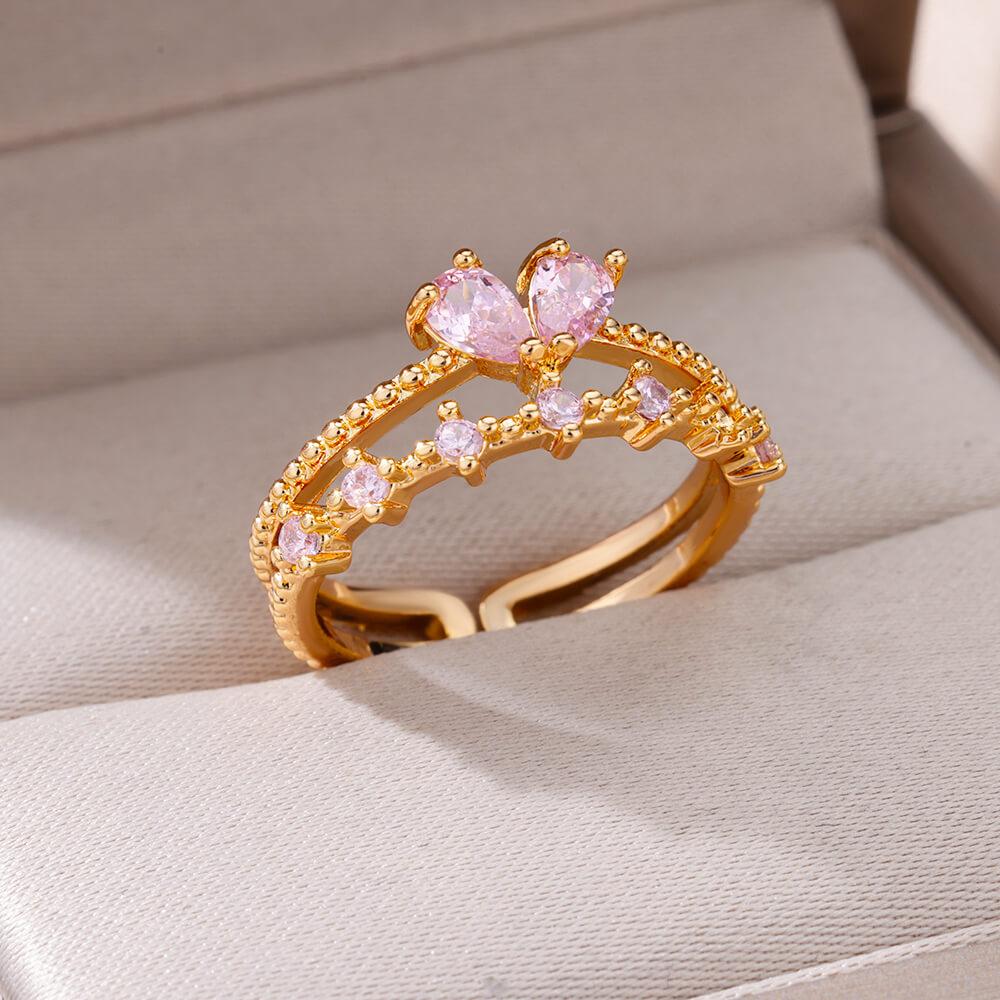 Vintage Zircon Heart Rings for Women Stainless Steel Gold Color Wedding Adjustable Rings Female Aesthetic Zircon Anillos Mujer