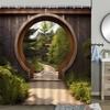 Chinese Style Shower Curtain Vintage Wood Board Garden Building Green Plant Bamboo Pattern Bathroom Decor Curtain Set