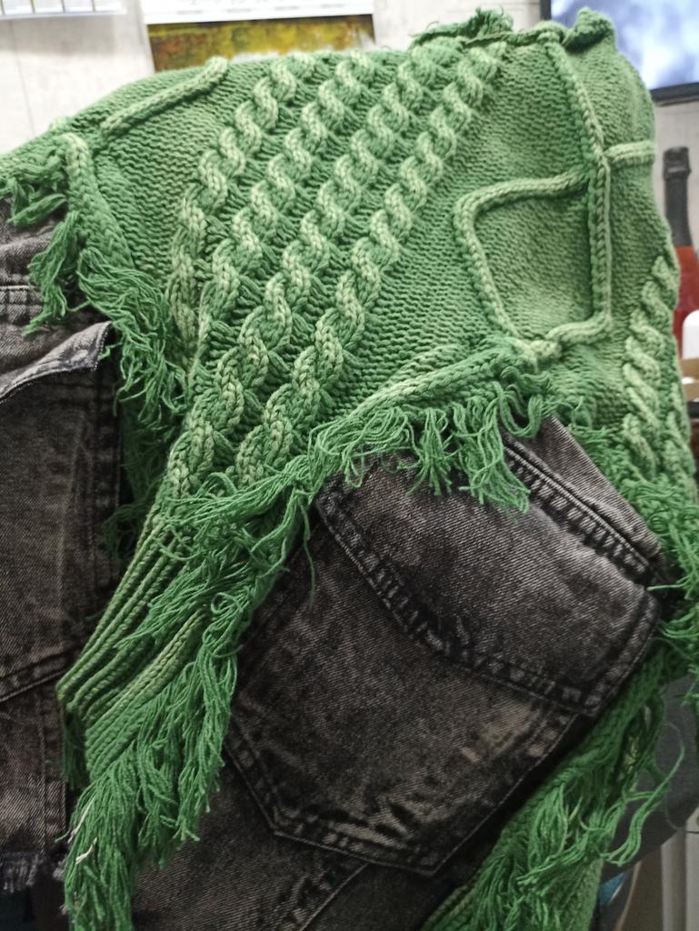 Women Irregular Do Old Pullover Patchwork Pockets Design Vintage Washed Denim Sweater