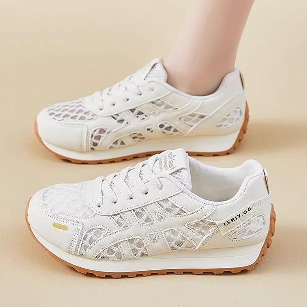 2025 New Summer Mesh Breathable Sports Shoes Women's Little White Mesh Shoes Lightweight Soft-soled Forrest Gump Training Running Shoes