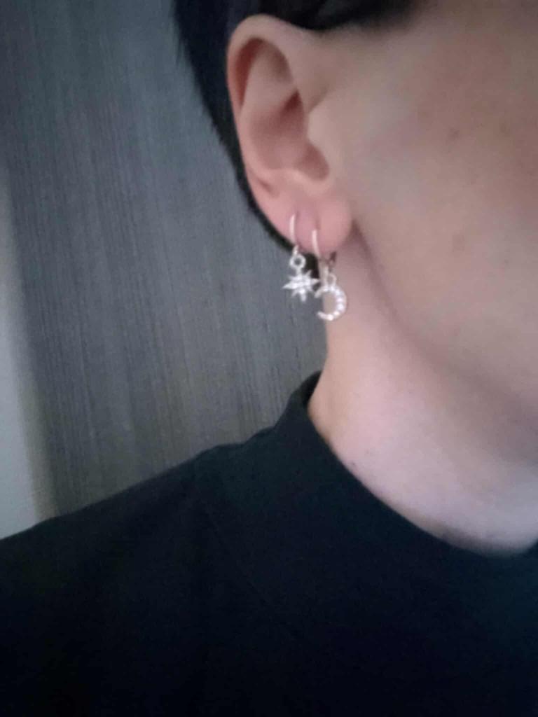 925 Sterling Silver CZ Star Moon Asymmetric Hoop Earrings for Women Girls Gold Silver Color Party Jewelry Gifts