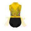Girls Latin Dance Dress Sleeveless Cutout Back Tassels Shiny Sequins Color Block Performance Costume