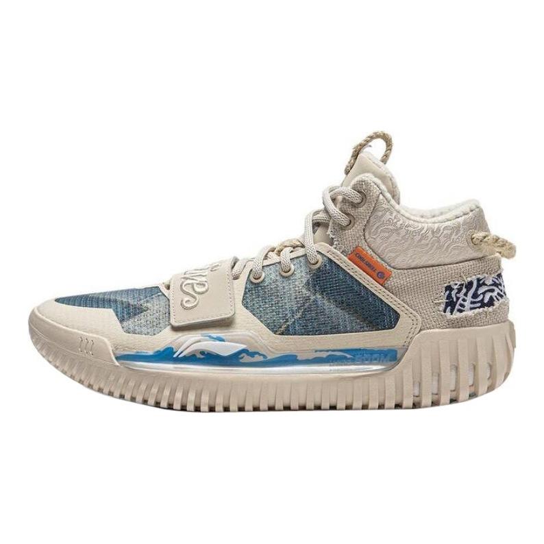 Li Ning Fan Wu 3 Weichu Youcai Lightweight High Resilience Breathable Comfortable Fabric Synthetic Leather Mid Top Basketball Shoes ABFT015-8