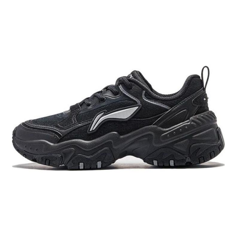 Li-Ning Soft Rebound Shock Absorbing Retro Thick Sole Increased Height Low Top Casual Shoes Women Sneakers Black AGCT424-3