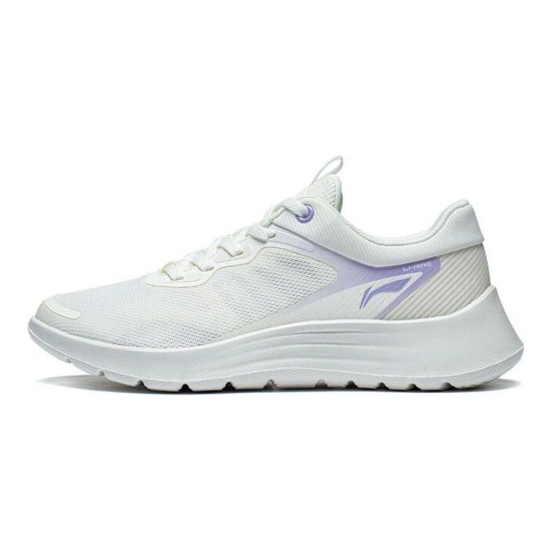 Li Ning Lightweight Soft Rebound Breathable Shock Absorbing Non-Slip Durable Low-Top Running Shoes Women Sneaker White Purple ARST020-1