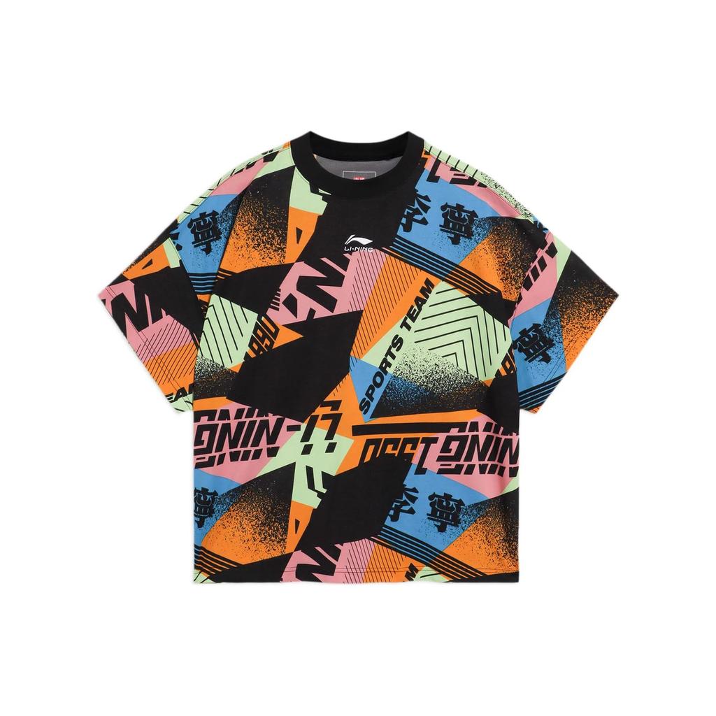 Li-Ning Alphabet Print Patchwork Round Neck Short Sleeve T-Shirt Unisex Tops Black AHSS155-2
