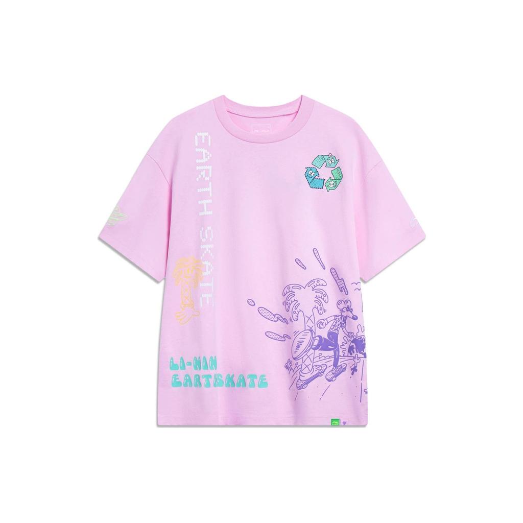 Li-Ning X Steven Harrington Cartoon Print Round Neck Short Sleeve T-Shirt Unisex Tops Pink AHST075-2