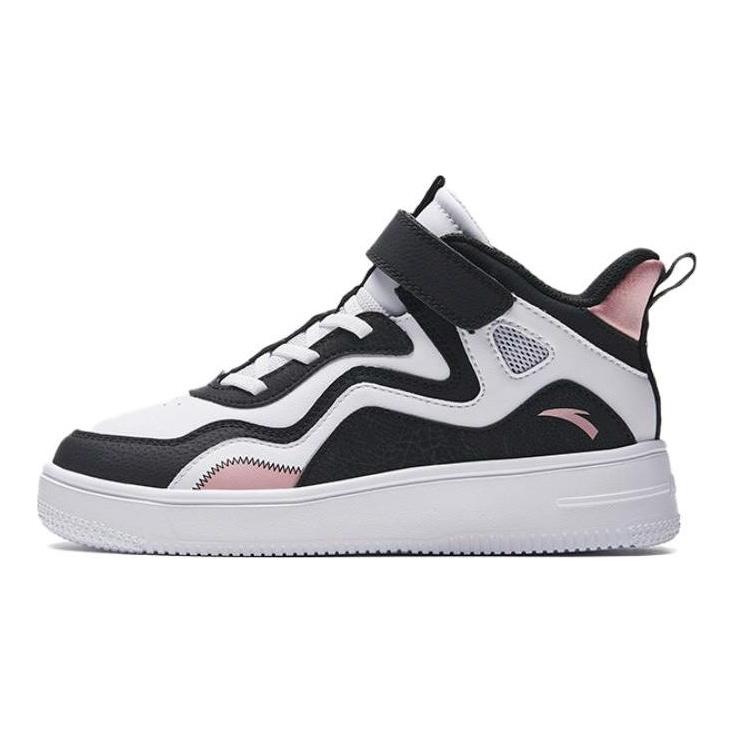 Anta Kids Synthetic Leather Non-Slip Wear-Resistant High-Top Skate Shoes Kids Sneakers Black White Pink A322338035-1