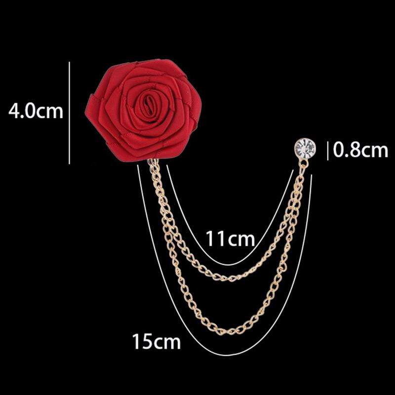 Bridegroom Wedding Brooches Cloth Art Hand-made Rose Flower Brooch Lapel Pin Badge Tassel Chain Men Suit Garment Accessories
