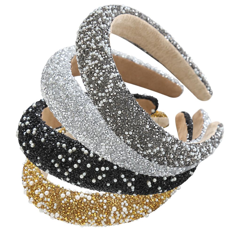 Women's Pearl-inlaid Hair Hoop Retro Fashion Pressed Wide-brimmed Hair Clip WOMEN'S Ultra-sparkly Light Luxury Hair Accessories