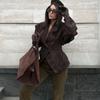 Dark Brown Suede Laplel Jacket Women's Warm Long Sleeve Commute Outerwear Retro British Style Temperament Jacket Autumn 2025