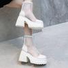 Fashion Fashion Block Heel Cold Boots Women's Autumn New Round Toe Spliced Mesh Rear Zipper Platform Non-Slip Shorthole Boots