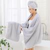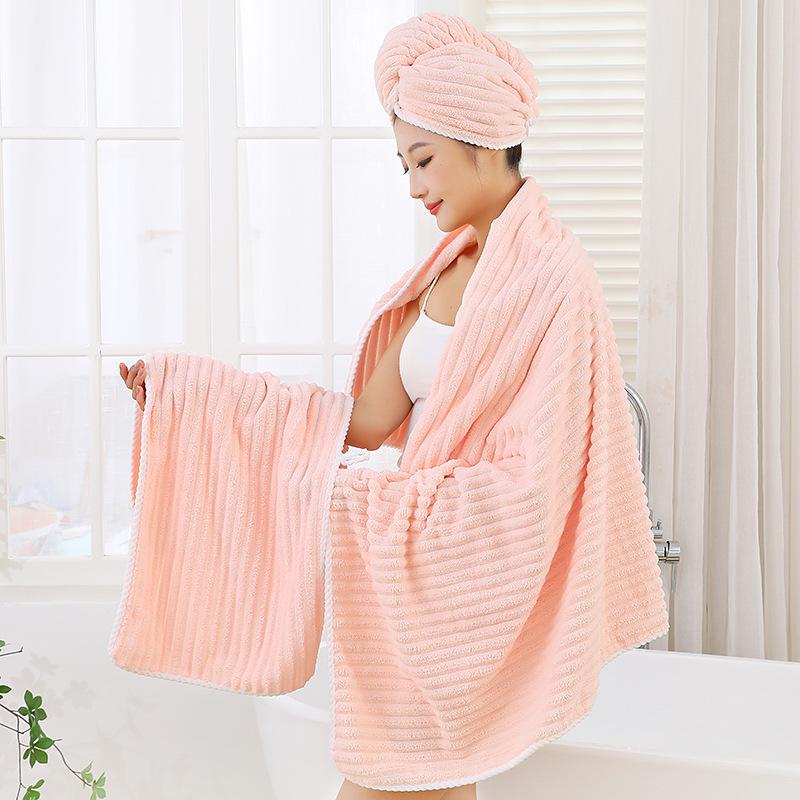 Candy Stripe Coral Fleece Bath Towel for Women - Thick, Absorbent, Quick-Dry Hair Cap