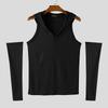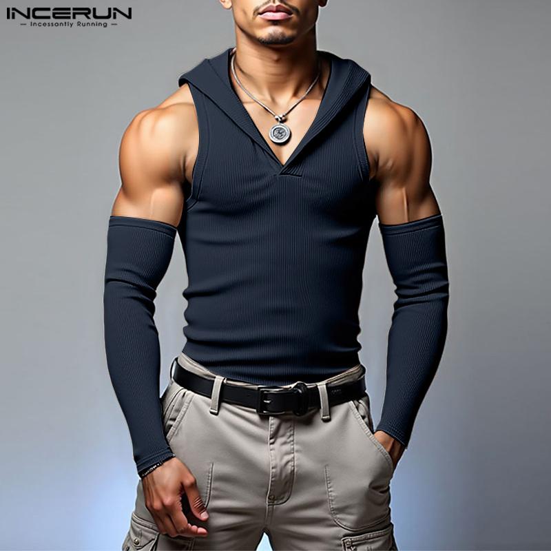 INCERUN Men Sleeveless Rib Casual Fitted Hooded Tank Tops with Oversleeve