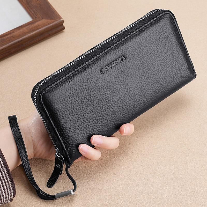 New Men's Wallet Long Leather Zipper Wallet First Layer Cowhide Business Clutch Bag Large Capacity Wallet