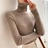 Women's Autumn Winter Tight-Fitting Inner Wear High Neck Pullover Knit Sweater with Pile Collar and Ribbed Design Versatile Base Layer