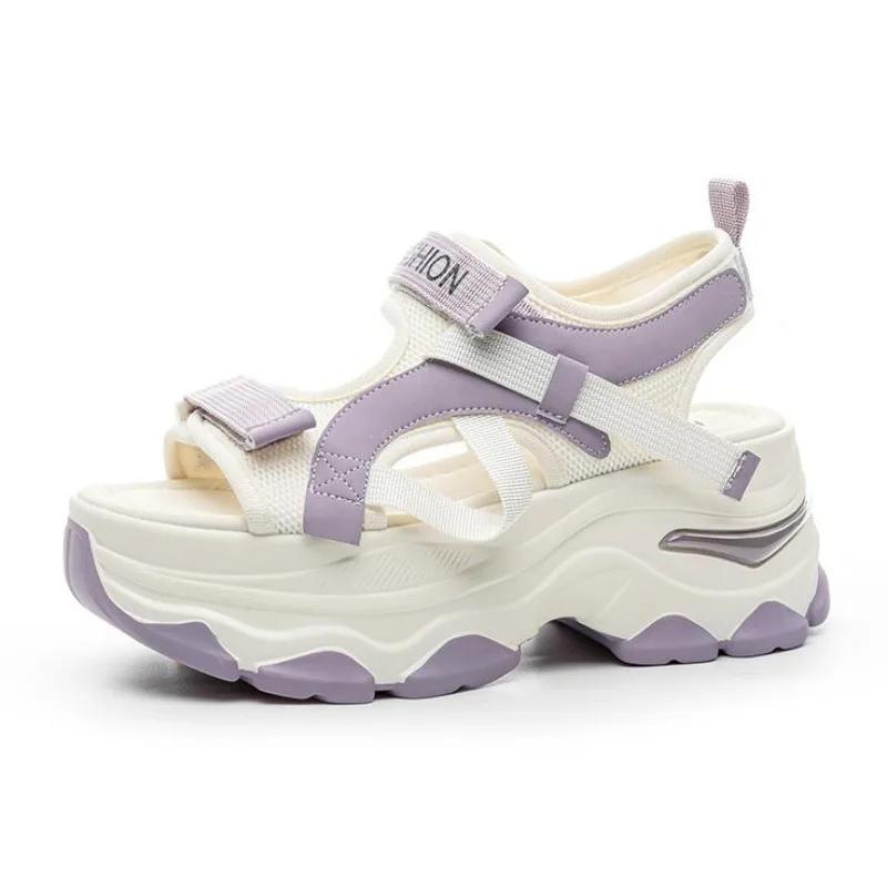 Fashion 7CM Air Mesh Synthetic Leather Sandals Breathable Women Summer Hollow Slipper Fashion Summer Sandals Platform Wedge Flats Shoes