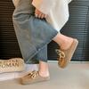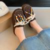 Fashion Women's Flat Shoes Cover Toe Slingback Lace-up String Bead One Kick Increased Internal Slippers All-match RetroSuede Women Shoes