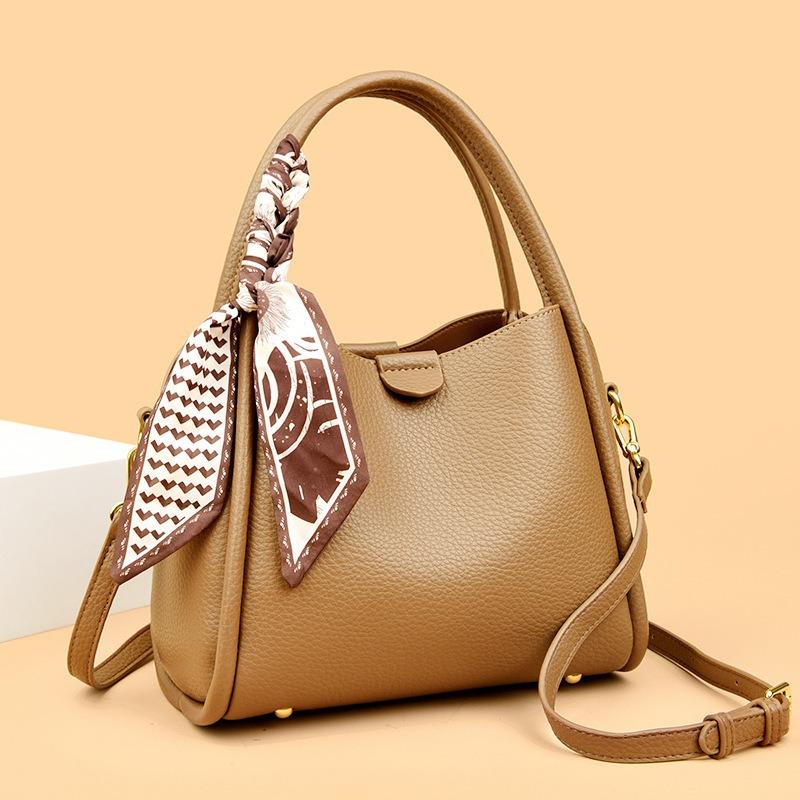 Women's Bag, Bucket Bag, New Urban Simplicity and Fashion, Lychee Pattern, Silk Scarf, Portable Shoulder Messenger Bag.