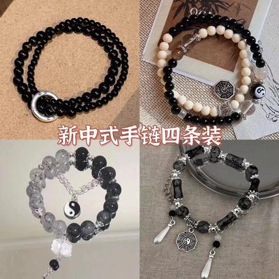 Niche Original Design Tai Chi Gossip Bracelet Women's New Chinese Style Black Beaded Ink Boys Bracelet Couple