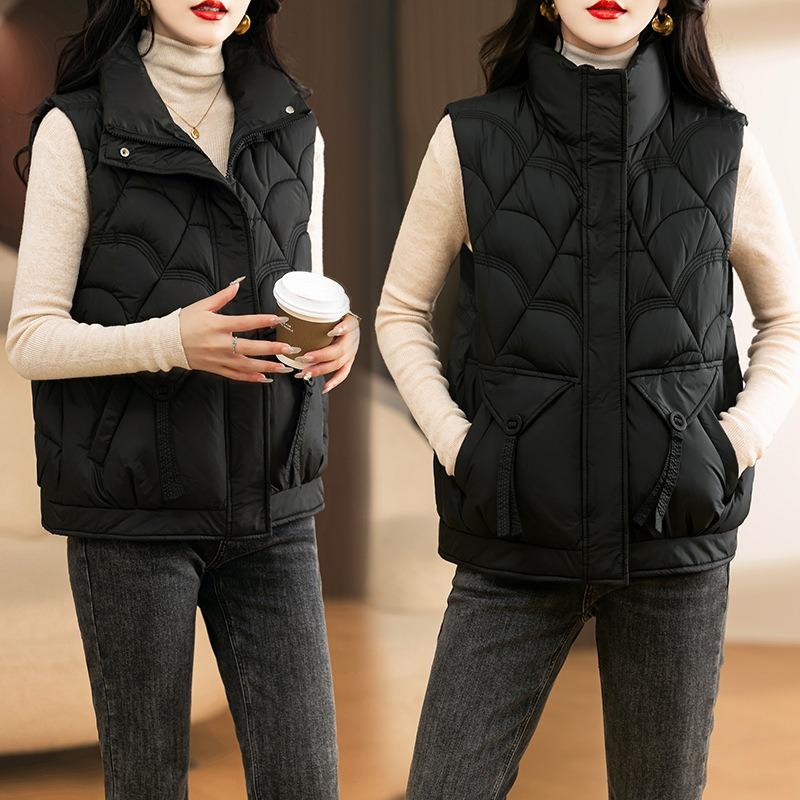 Stand-up Collar Cotton Vest Women's Short Fashion Temperament Cotton Vest Loose Moire Vest Jacket Cotton Vest