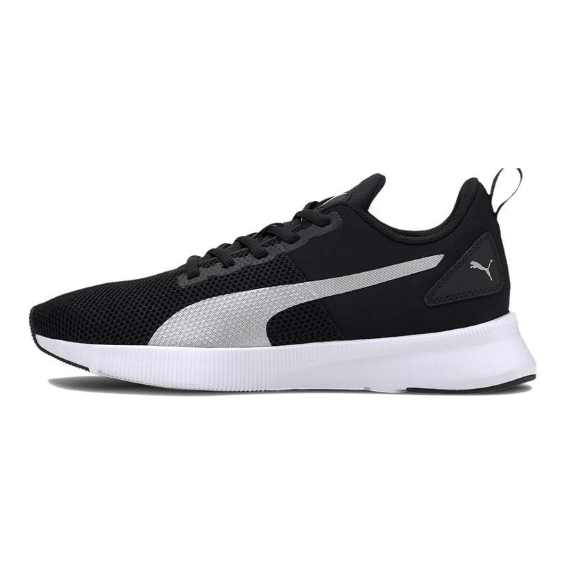 Puma Flyer Round Toe Lace-Up Mesh Fabric Shock Absorbing Non-Slip Lightweight Low-Top Running Shoes Unisex Sneaker Black Silver 192257-25