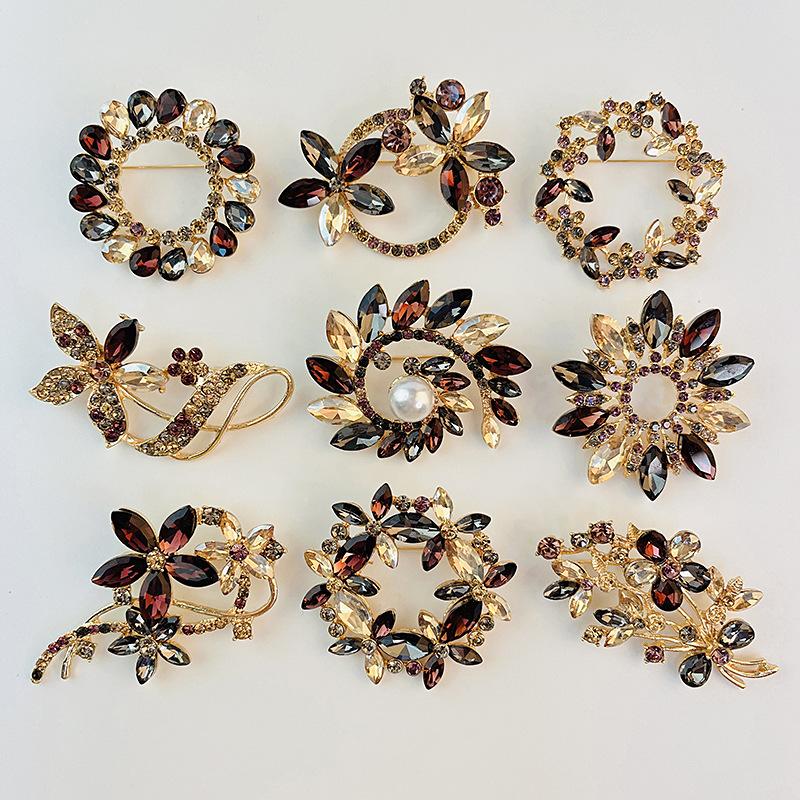 High-end Retro Crystal Flower Brooch Women's Personality Jacket Cardigan Corsage Fashion Exquisite High-end Pin