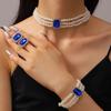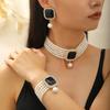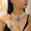 European & American Fashion Multi-Layer Pearl Crystal Jewelry Set: Necklace, Earrings & Bracelet