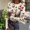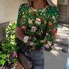 Women's Slim Bottom T-shirt Fashion Casual Gradient Printing Round Neck Pullover Long Sleeve Top