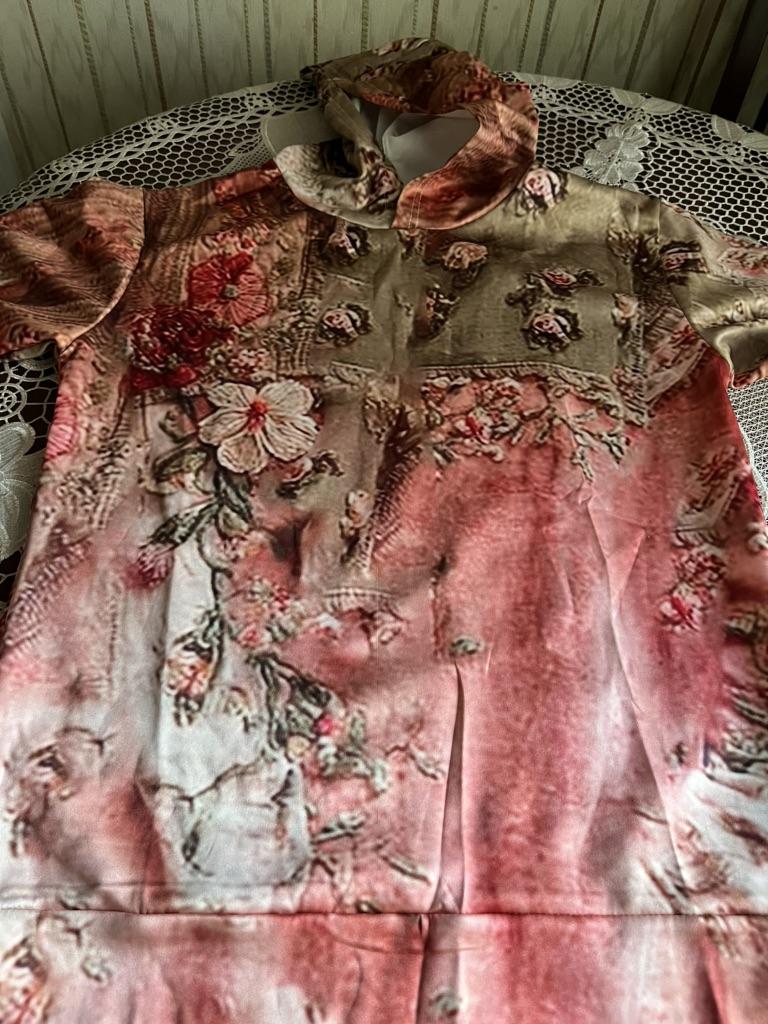 The photo on the card is misleading, it's just a floral blurred print on the sweatshirt, although what did I expect for that price(((