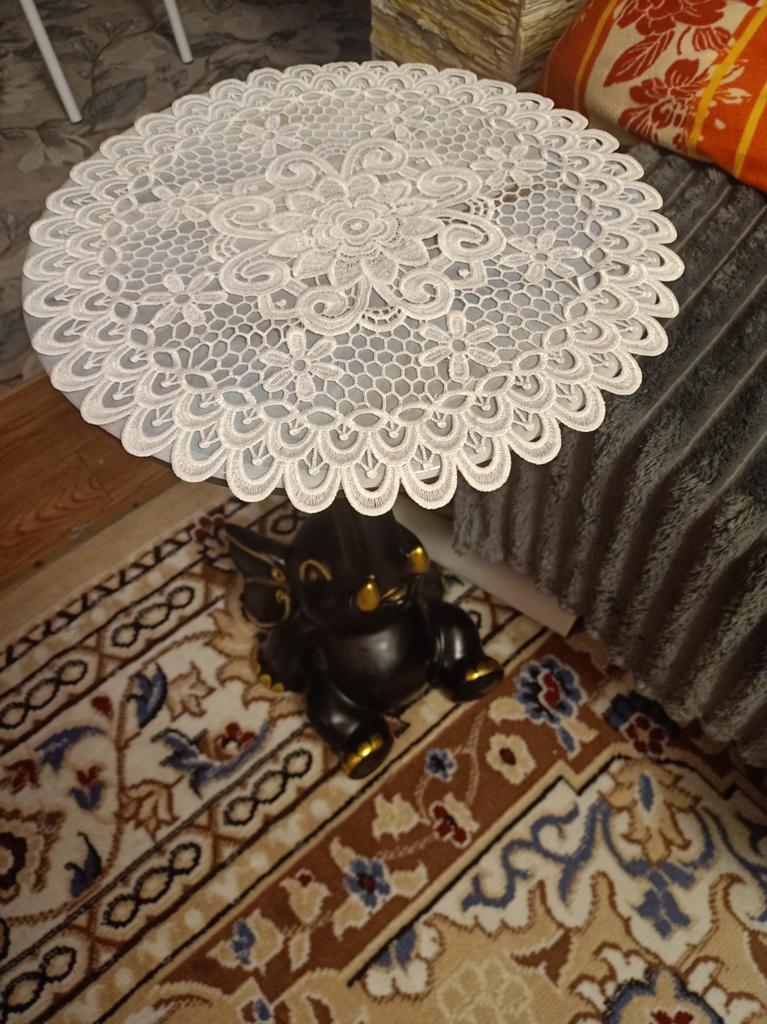 French Retro White Lace Round Placemat with Heavy Embroidery