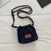 Large Capacity Drawstring Crossbody Bag Solid Color Jeans Shoulder Bag Denim Canvas Bag Women