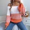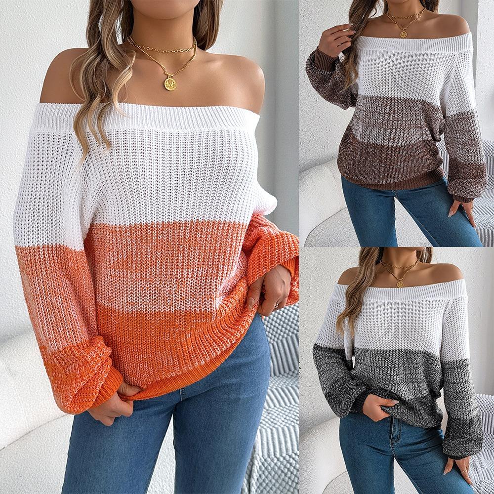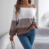 New Arrival Women's Oversized Casual Colour-Block Off-the-Shoulder Bell-Sleeve Pullover Knit Top