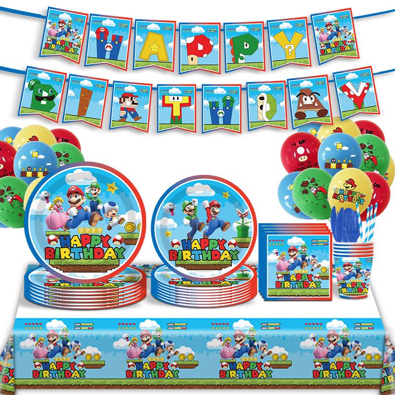 Mario Theme Disposable Paper Cups & Plates Set for Birthday Parties