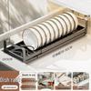 Stainless Steel Pull-Out Drawer Organizer with Bowl and Plate Rack for Kitchen Cabinets