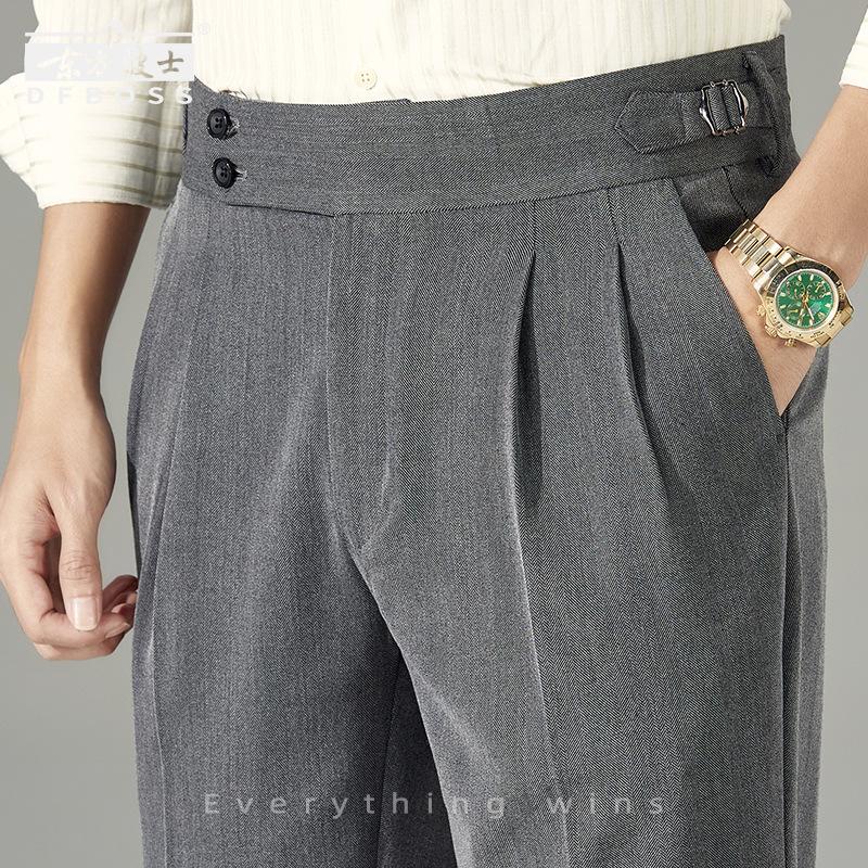 These stylish dress trousers are designed for the modern man who values both fashion and convenience. Crafted from a high-quality acetate material with a chemical fiber blended finish, they offer a luxurious feel and a sleek appearance. The trousers feature a high-waisted design with an adjustable Paris buckle for a customized fit, ensuring comfort throughout the day. Their non-iron fabric keeps them looking crisp and polished, while the straight-leg cut provides a classic silhouette suitable for both formal and semi-formal occasions.