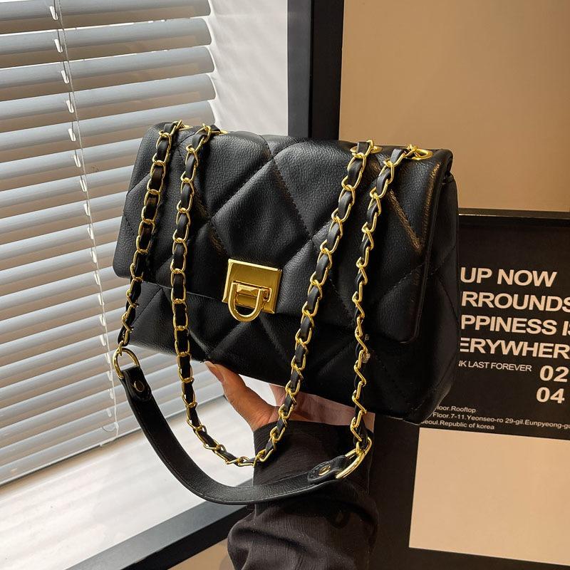 Bag Women's New Trendy Versatile Chain Rhombus Messenger Bag Premium Textured Shoulder Small Square Bag