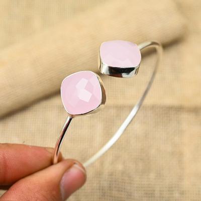Ravishing Pink Chalcedony Gemstone 925 Sterling Silver Handmade Lovely Jewelry Adjustable Bangle For Women