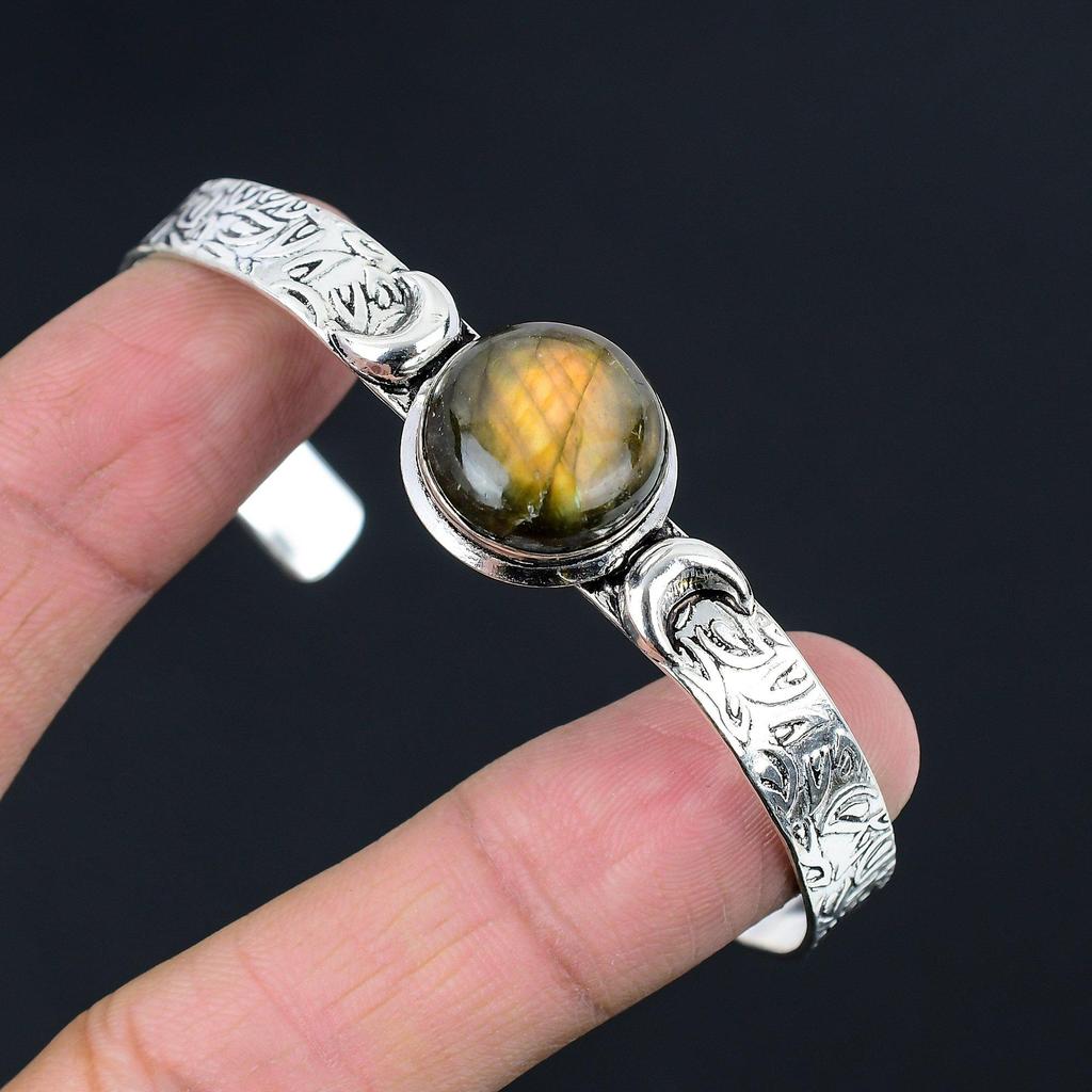 Gift For Her 925 Silver Natural Labradorite Bangle Crescent Moon Adjustable