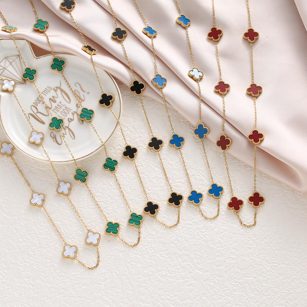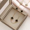 Titanium Steel Double-sided Clover Necklace with Ten Flower Mother of Pearl Necklace, 18K Gold-plated and Colorfast