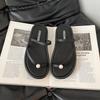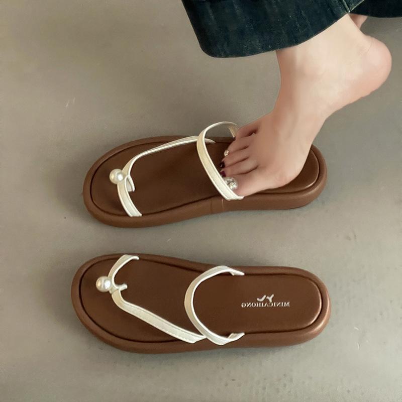Thick-bottomed French Beach Slippers Fashionable Versatile Simple Pearl Flip-flops Women's Summer Retro Outerwear Thin Sandals