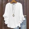 Lotus Leaf Sleeve Seven Quarter Sleeved Top Solid Color Fashionable Casual Loose V-neck Business Women's Blouses & Shirts