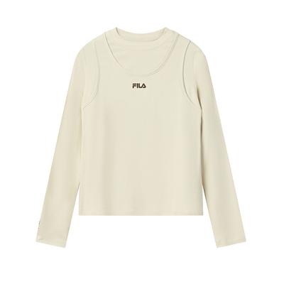 Fila Simple Round Neck Solid Color Pullover Long Sleeve Sun Protection T-Shirt Women Tops Fog-Lotus-White F11W513205F-IV