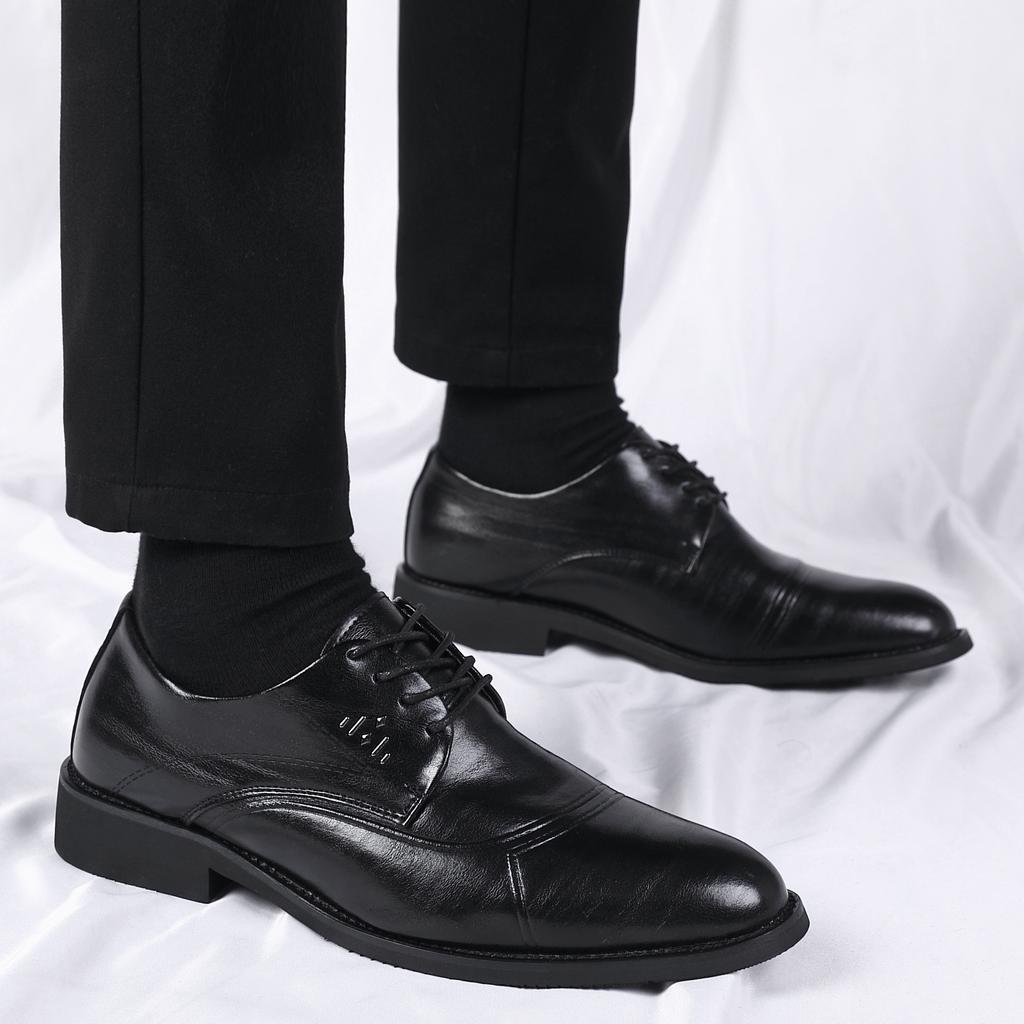 Spring Leather Shoes Men's Business Dress Genuine Leather Casual British Pointed Head Korean Version Trend Breathable Inner Height Increase Men's L