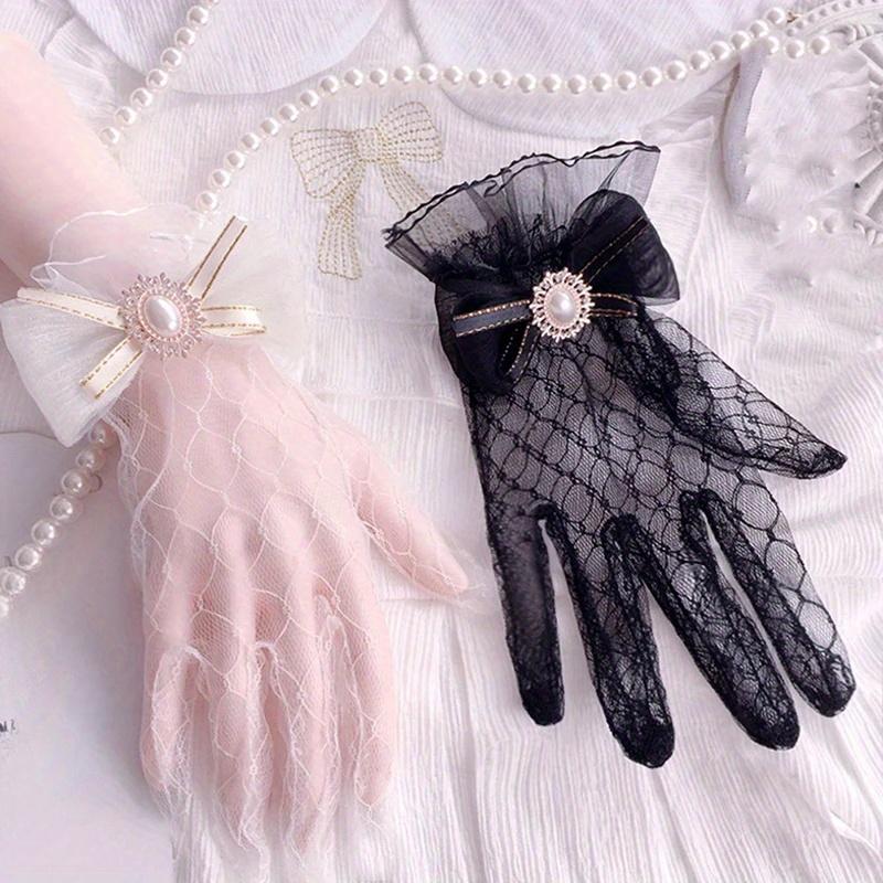 Lolita Mesh Bow Flower Lace Gloves Black White Lace Gloves Lolita Lace Sleeves Cosplay Jewelry