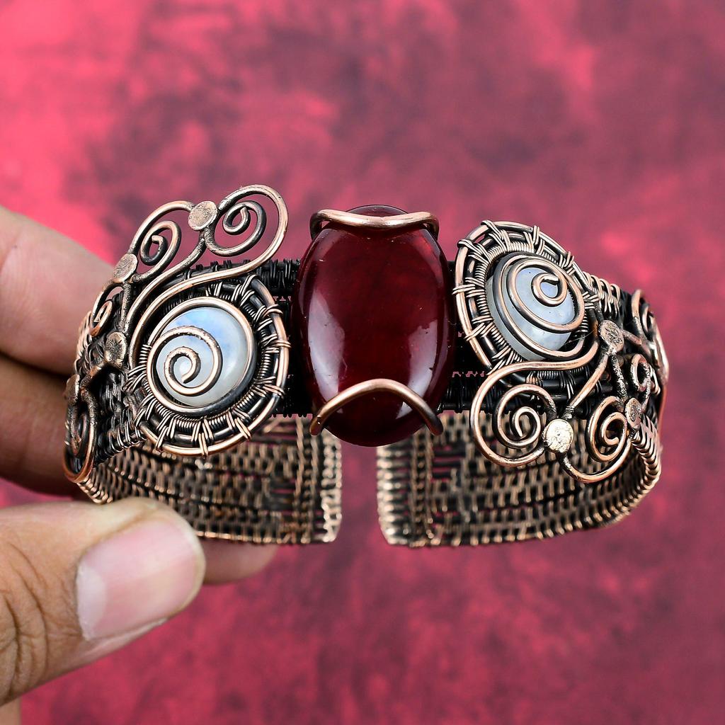 Red Fire Labradorite Bangle Copper Wire Wrapped Gemstone Cuff Bracelet Adjustable Bangle Moonstone Copper Jewelry Handmade Bangle For Gifts